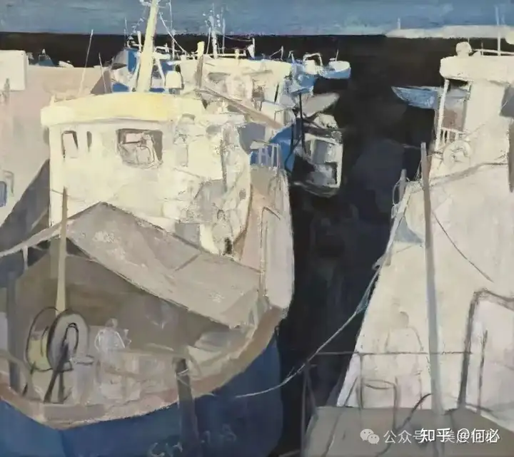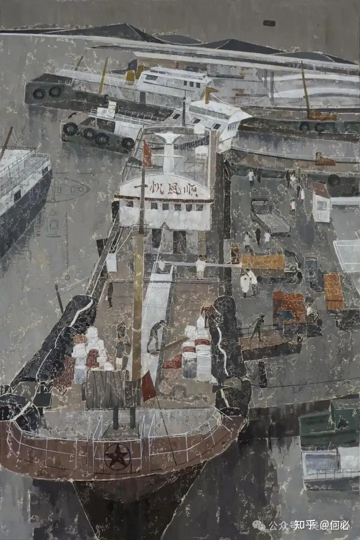 354 刘建军《忙碌的码头》油画