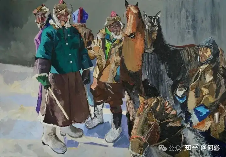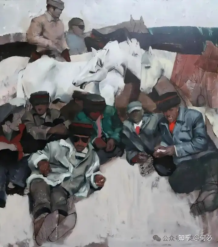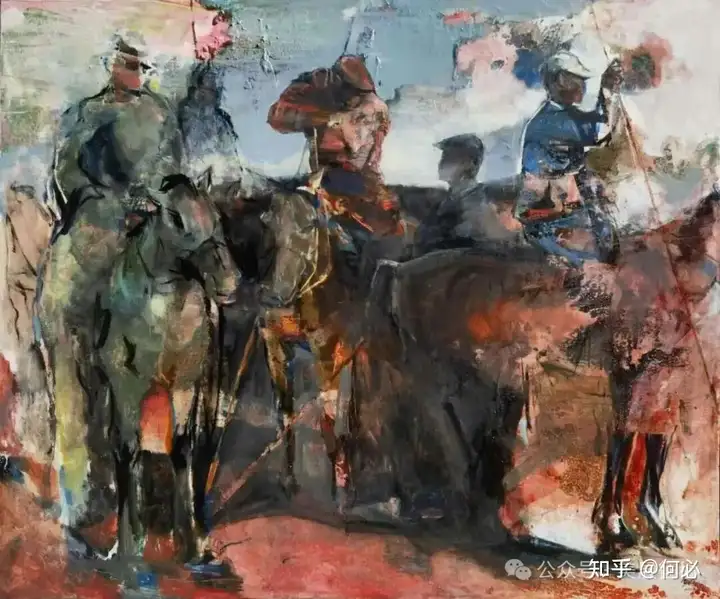 352 刘贯冲《肖贡巴哈节上的塔吉克骑手们》油画