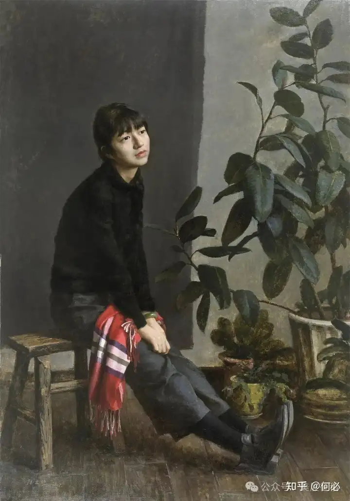 383 王念东《橡皮树下的守望》油画 四川省诗书画院
