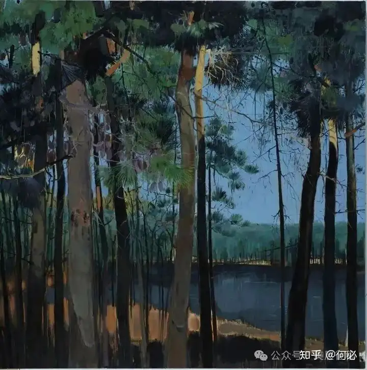 319 翟富军《秋江澄影听松风》油画 安徽