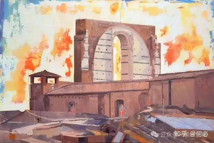 348 李卓《战争遗迹—锡耶纳的教堂》油画 中国国家画院