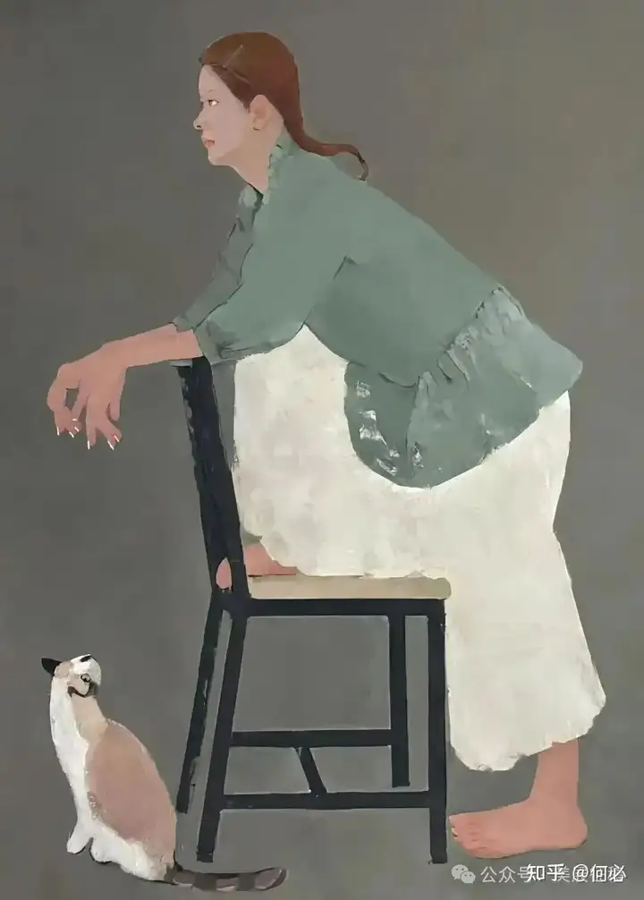 372 孙洪敏《猫·女孩》油画 160x120cm广东画院