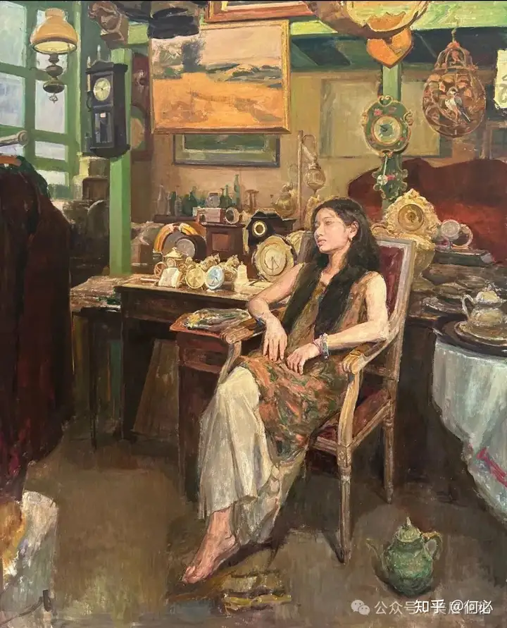 385 王姝《凝视》油画