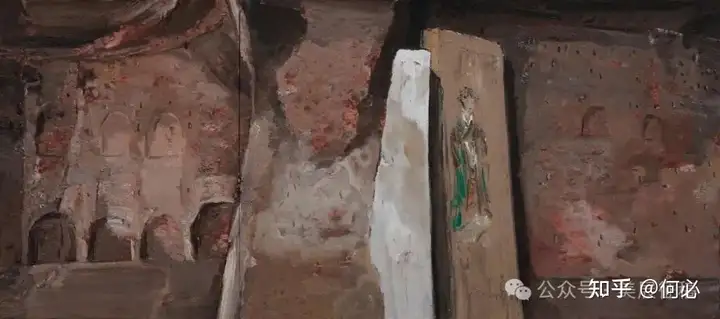 376 田卫平《马蹄寺石窟》油画