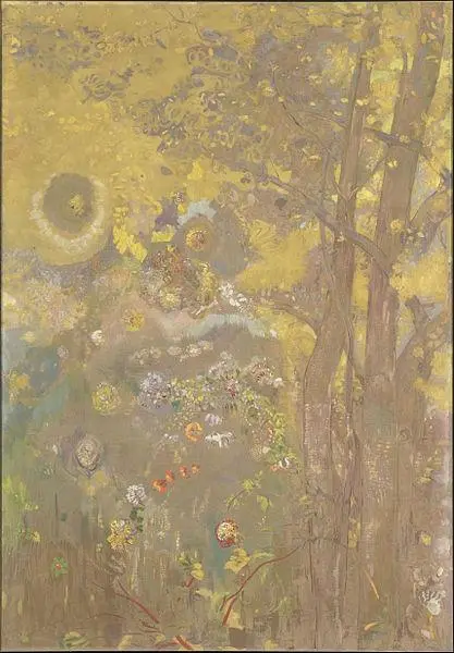​法国象征主义著名画家奥迪隆·雷东作品《黄色背景中的树木》